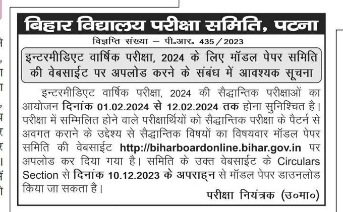 BSEB 12th Model Paper 2024 Pdf Download Official
